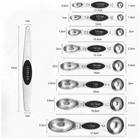 Elevate your cooking and baking precision with the 9 Pieces Stainless Steel Magnetic Measuring Spoons Set including 8 pieces measuring spoons and one piece leveler, expertly crafted for functionality, organization, and modern kitchen style. Featuring a smart double-ended design and a built-in magnetic leveler, this sleek stainless steel set ensures accurate measurements and clutter-free storage-all…