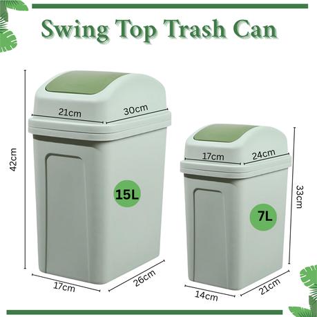 Bestby – 15L and 7L Swing Lid Waste Bins Dust Bins Trash Cans( Set of 2) – Grey