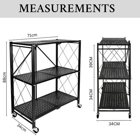 Bestby – 3-Tier Heavy Duty Foldable Metal Storage Shelf Rack with Wheels