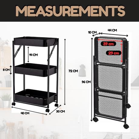 Bestby – 3-Tier Foldable Metal Storage Cart with Lockable Rolling Wheels
