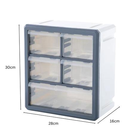 Keep your workspace organized and tidy with this versatile storage box, available in multiple divider 5 drawer to suit your specific needs. Whether mounted on the wall or stacked together using post-connectors, these storage boxes help maximize space while keeping everything within reach and neatly arranged. Ideal for home, offices, kids’ rooms, workshop, garages for…