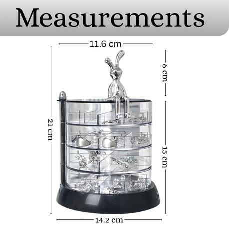 Keep your accessories beautifully organized with the Transparent Four-Layer Rotating Jewelry Box, featuring a sleek black design and a playful rabbit doll on top. Its four rotating layers offer easy access to rings, earrings, necklaces, and more, while the transparent finish allows you to view your collection at a glance. Both practical and decorative, it’s…