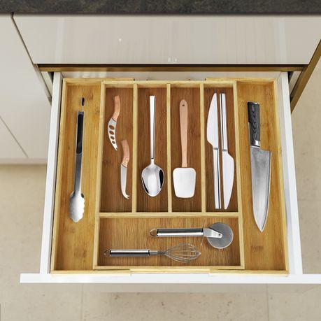 Expandable Cutlery Drawer Organiser adds a fresh look to your home while keeping your draws organized, with the stylish Fine Living expandable bamboo cutlery tray. It is ingeniously designed with 5 compartments that expand to 7 when you pull out each side. The tray is made to fit various sizes of drawers and increase storage….