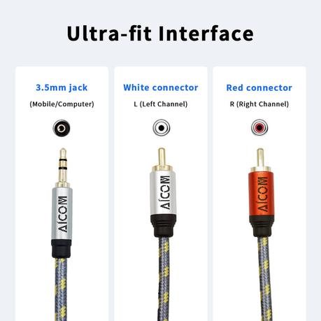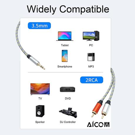 Multi-uses: The 3.5mm to 2RCA auxiliary stereo Y Splitter is universally compatible; Step down design make sure secure-fit on many device, such as Tablet to Stereo Receiver, Speaker, Amplifier, TV, Car and other RCA-enabled devices.