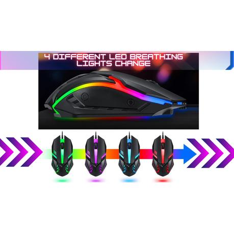 • Gaming Mouse: Ergonomically Designed and Quality ABS construction; Durable 59inch USB braided wire;4 Different LED breathing light change automatically.