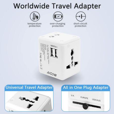 AICOM-All in One Worldwide Universal Plug Travel Adapter with 2 USB Ports