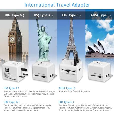 – Universal Travel Adapter: The multi-functional all in one plug adapter covers over 224+ countries with Type A,B,C,E,F,G,I,J,L,N plug, such as South Africa, Germany, Europe, USA, England, Asia, Thailand, Australia, China, Japan, Israel, Italy, Colombia, New Zealand, etc. This travel adapter could solve your charging problem during overseas travel.
