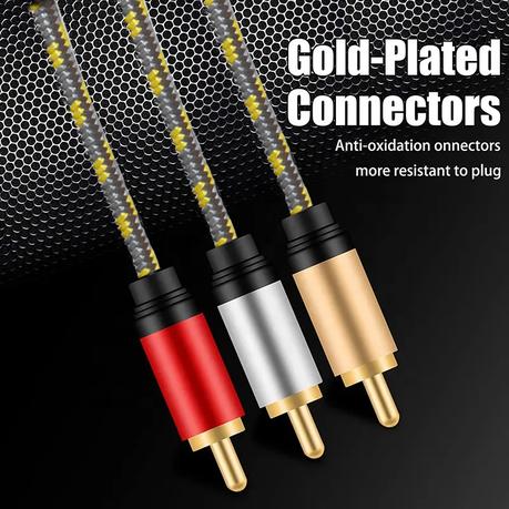 The gold-plated interface is more durable and the transmission is more stable. 3RCA Male to 3RCA Male Stereo Audio Video Cables.Yellow is for video. white is for Left audio,red is for Right audio.