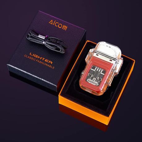 AICOM -No Gas Dual Arc Cigarrete Lighter with LED Flashlight – Red