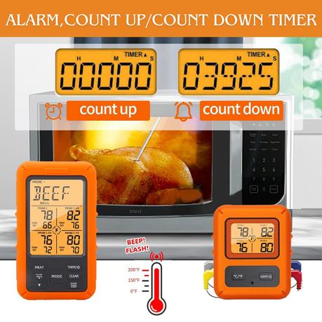 AICOM – 4 Probes Digital Meat Thermometer with Alarm Calibration & Timer