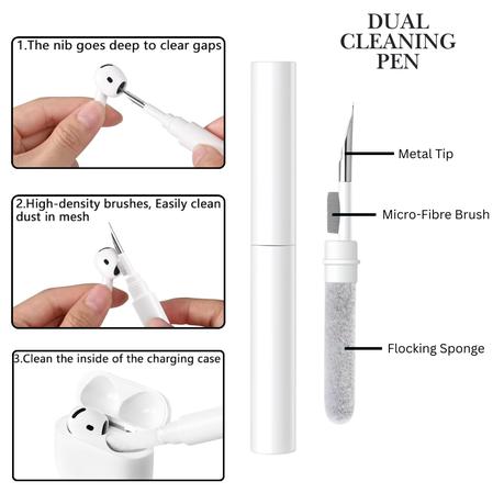 - 3-in-1 Cleaning Pen Included: Comes with a versatile cleaning tool featuring a soft brush, precision tip, and sponge for removing dust and debris from earbuds, charging ports, and hard-to-reach areas.