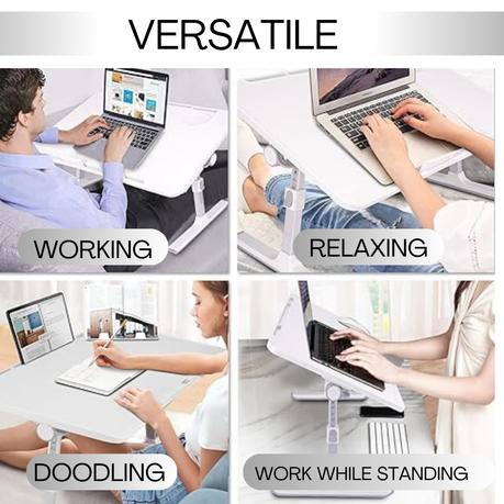 Work, study, or relax comfortably with this adjustable laptop bed table designed for versatility and convenience. Whether you’re working from home, attending online classes, or enjoying a movie, this portable desk provides a stable surface right on your bed, sofa, or floor. The foldable design saves space and allows easy storage, while the adjustable height and angle options help you maintain a healthy posture and reduce strain on your back, neck, and wrists. Perfect for laptops, tablets, books, or even breakfast in bed, this multifunctional desk combines durability, portability, and style in one.