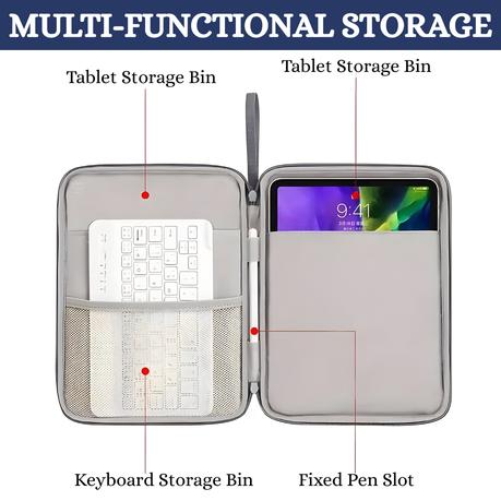 • Efficient Multi-Pocket Organization: Designed to hold more than just your tablet, it features a padded main compartment, two open interior pockets, a mesh organizer, and a zippered front pocket-perfect for cables, chargers, pens, and smartphones.
