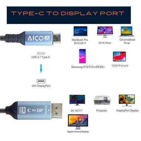 AICOM – 4K Ultra HD Type-C To Display Port Cable (2 Meters)