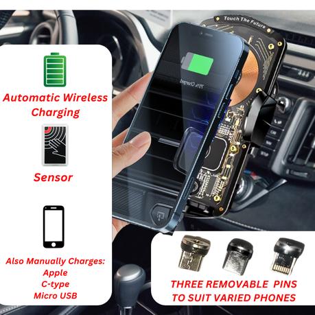 The Phone Smart Wireless Charger Auto Clamping Holder, designed to make your driving experience safer and more convenient. This smart holder combines a robust design with cutting-edge technology, it’s intelligent hand-free opereaion enhance s your safty when driving; It also has both wireless and wired charging capabilities. It’s perfect for anyone who needs to stay connected on the go!