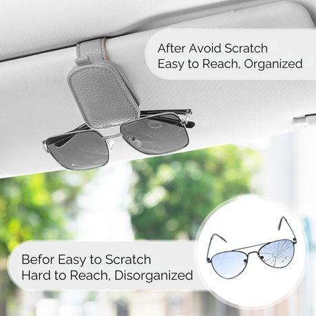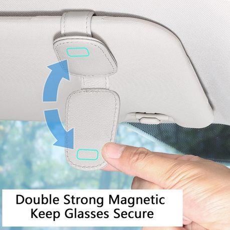 AICOM – 2pcs Car Glasses Holder – Sunglasses & Card Storage Clip – Grey