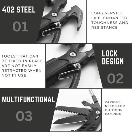 - Functions: 17-in-1 (Hammer, Knife, Pliers, Screwdrivers, Cutter, etc.)