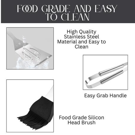 - Crafted from thick, high-quality stainless steel for long-lasting durability, rust resistance, and a sleek, polished finish , each tool is designed to withstand high temperatures and frequent use. Cleaning is effortless-simply rinse with water or place in the dishwasher for a hassle-free cleanup.