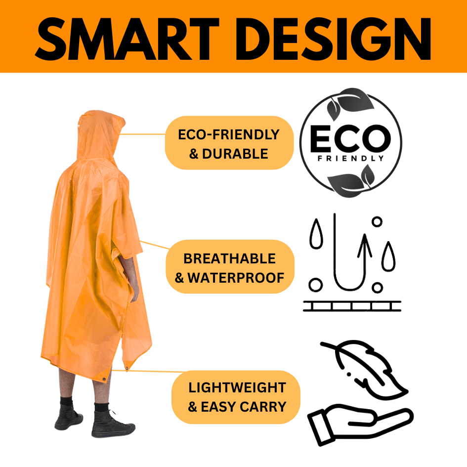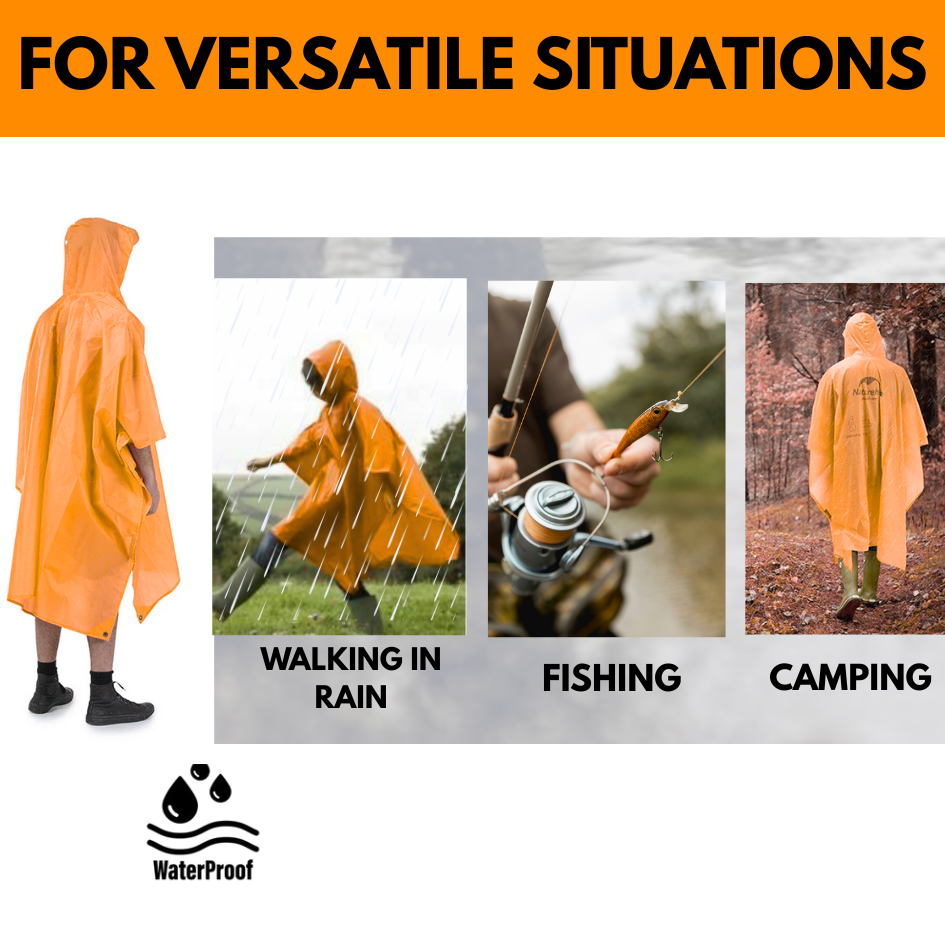 ARFAST – 3-In-1 Outdoor Rain Cape Ground Mat Emergency Shelter with Pockets – Orange