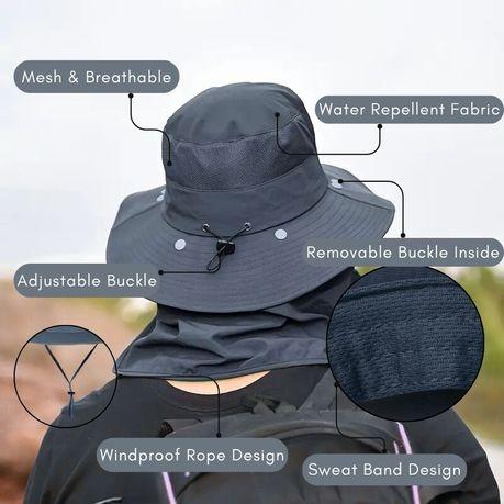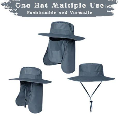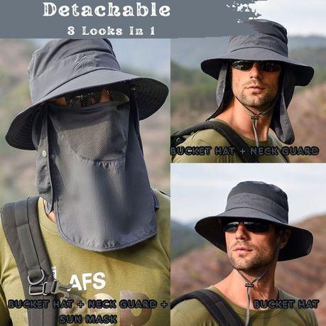 Arfast- 3-in-1 Wide-Brim Sun Bucket Hat with Face Mask and Neck Protection – Grey