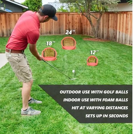 – Includes: 3 Golf chipping nets (12-inch, 18-inch, and 24-inch)