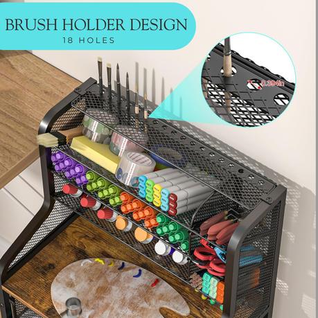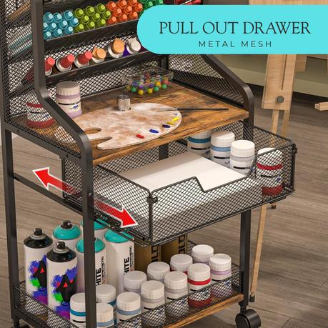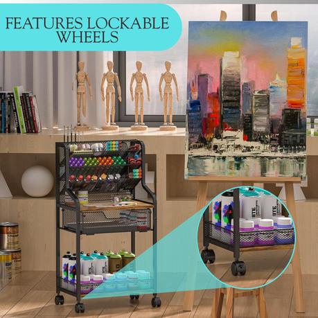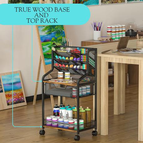 Arfast- 3Tier Utility Craft Storage Cart With Drawer And Brush Holder