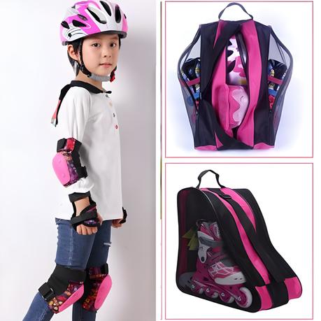 ARFAST 8 piece 3-12yrs Kid Protective Guard Gear & Roller Skate Storage Bag – Pink – M