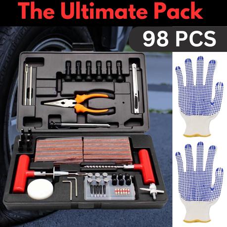 Complete 98-Piece Set: Includes everything from T-handle plugs and repair strips to pliers, pressure gauge, valve tools, and more-everything you need for fast, on-the-spot repairs.