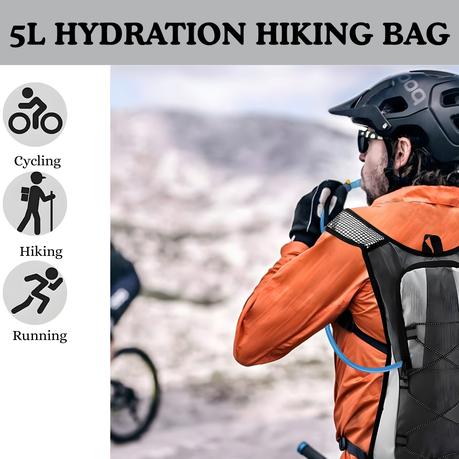 Enjoy smart, compact organisation: Designed with a streamlined 5L main compartment and one interior pocket for organised storage of snacks, tools, maps, and other small essentials. Comes with a 2L hydration bladder to ensure reliable hydration on the go;