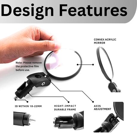 - A 360 rotating mirror head allows you to customize your view for your posture, height, and handlebar type-ensuring optimal visibility every time.