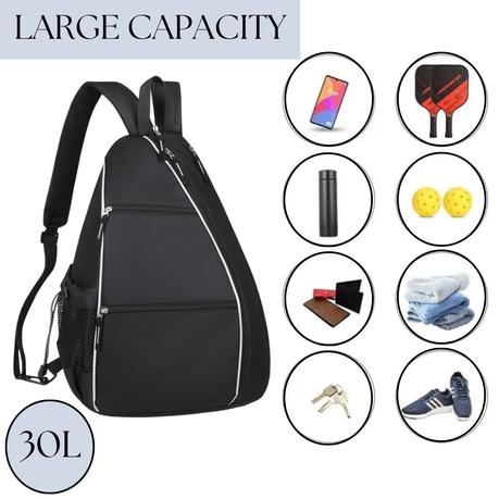Spacious & Organized: This pickleball bag offers generous space, with 5 pockets and an external water bottle holder. The main compartment can fit up to 4 pickleball paddles, 2 tennis or racquetball rackets, 20 pickleball balls, or a laptop up to 15 inches. It’s perfect for both men and women as a tennis or sports backpack.