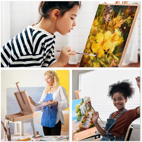 - Built-in Storage Box: Comes with four adjustable compartments to neatly organize paints, brushes, and other supplies. Ideal for keeping your workspace clutter-free whether at home or on the go.
