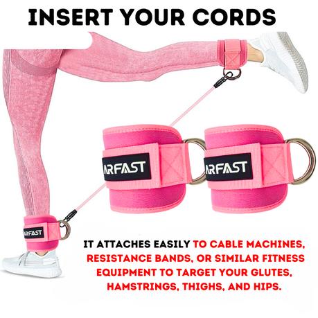 ARFAST-Workout Ankle Straps with Stainless Steel Rings Velcro Closure(Pair) – Pink
