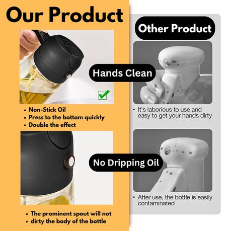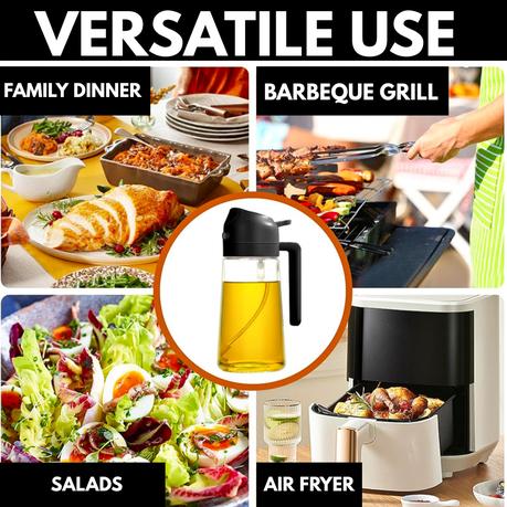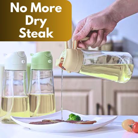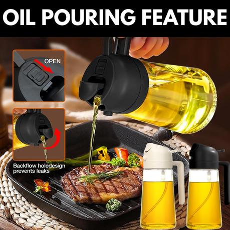 Why settle for one function when you can have both? Each bottle features an ultra-fine mist sprayer and a gravity-based pour spout with a flip cap. Whether you need a light spray for salads or a steady pour for frying, the choice is yours – instantly.