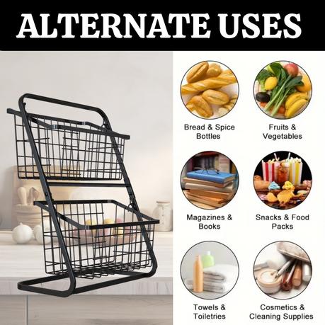 Bestby – 2-tier Large Capacity Metal Wire Storage Baskets Stand Rack