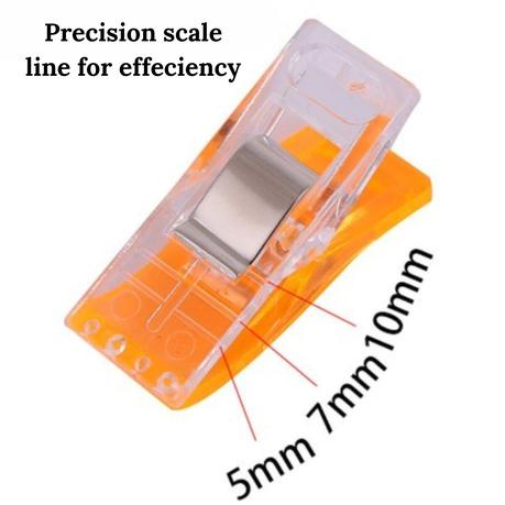 – Precision Scale Lines for Efficiency: Each clip is designed with measurement markings, helping you align fabrics with accuracy and speed extra ruler is required