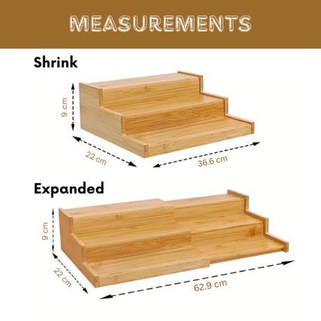 Organize your spices and condiments beautifully with the Bestby 3-Layer Extendable Kitchen Seasoning Rack. Crafted from eco-friendly bamboo, this adjustable rack extends from 36.6cm to 62.9cm to fit your space and storage needs. Its 3-tier design provides easy visibility and access to jars, bottles, and other containers, keeping your kitchen tidy and stylish.