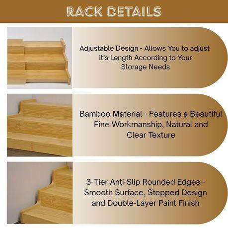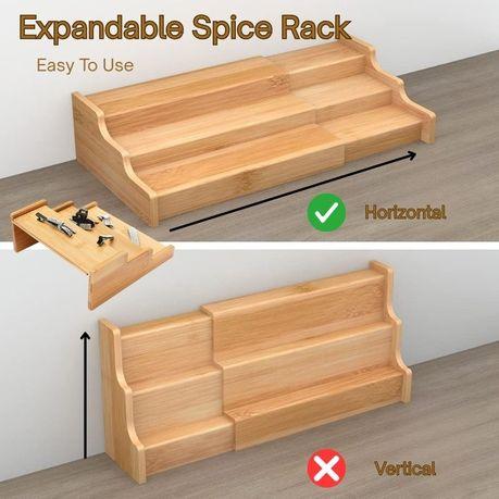 – Solid Non-Wobble Construction: Engineered with reinforced edges and thick bamboo panels, the rack offers excellent stability even when fully expanded. The sturdy build prevents wobbling, tipping, or sagging under the weight of jars, bottles, or containers.