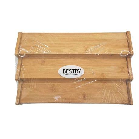 Bestby 3-Layer Bamboo Extendable Kitchen Seasoning Rack Organizer