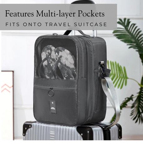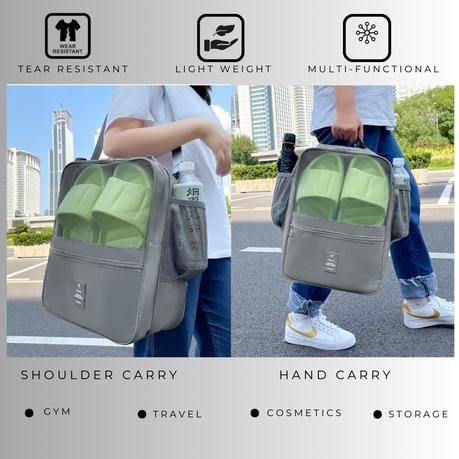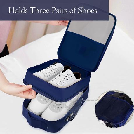 The shoe organizer is big enough to accomodate 3 different shoes for your travel, camping, business, sports or fitness. it not only protects your shoes from getting squashed by other items in your luggage they also prolong the life span of your shoes keeping them looking fresh. These bags come with multiple pockets, giving you more options to organize and pack your items, not only can be used as a shoe bag for travel, but also as a cosmetic, clothes or tools organizer.