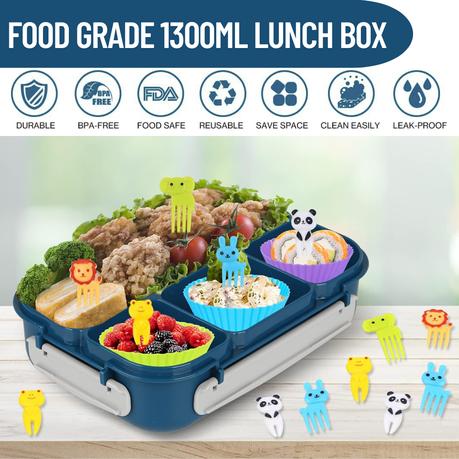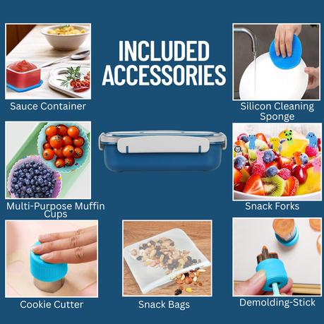 - Easy to Clean & Reusable: The bento box is dishwasher-safe for effortless cleaning. The included silicone cleaning pad offers a convenient option for handwashing. Reusable cutting molds and accessories help you create fun shapes for cookies, fruits, and vegetables-great for picky eaters!