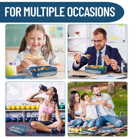 - 4 Smart Compartments: With 4 separate compartments and a total capacity of 1300ml , this bento box is ideal for keeping food items neatly separated-no mixing of flavors! The size (22×15×5cm) is perfect for portion-controlled, well-balanced meals for kids and adults alike.