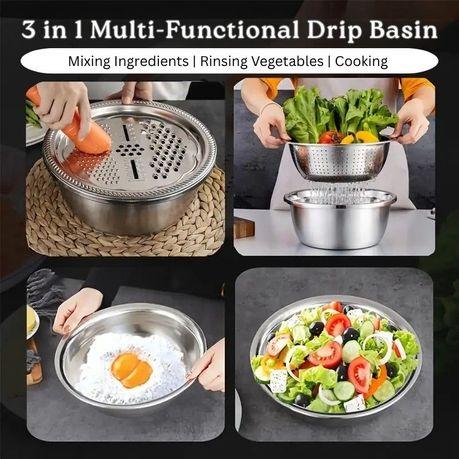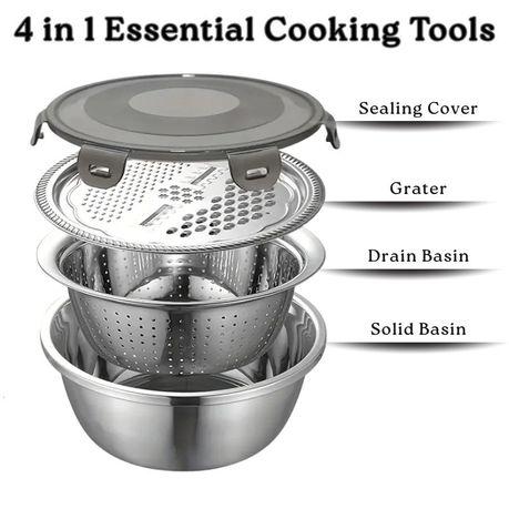 Simplify your kitchen routine with the Bestby 4-in-1 Stainless Steel Basin Colander Set-a multifunctional must-have for every home chef. Thoughtfully designed to combine a basin, strainer, grater, and sealing lid, this space-saving tool helps you prep faster, cook smarter, and clean up easier. Whether you’re washing produce, draining pasta, grating cheese, or storing leftovers, this versatile set handles it all with durable elegance.