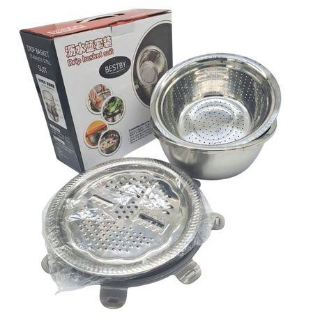 Bestby 4-in-1 Stainless Steel Bowl Basin Colander Drip Basket Grater & Lid