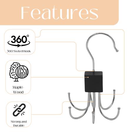 Bestby – 5 Pcs Belt & Hat Organizer 360 Rotatable Prong Hooks – Black