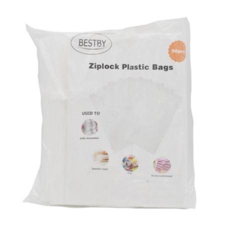 Bestby – 50pcs Clear Front Frosted Back Ziplock Plastic Packaging Bags – L