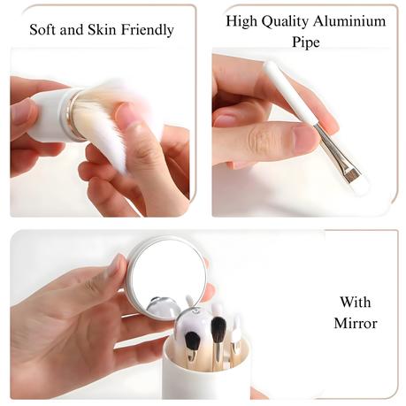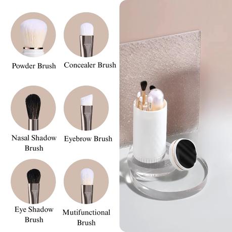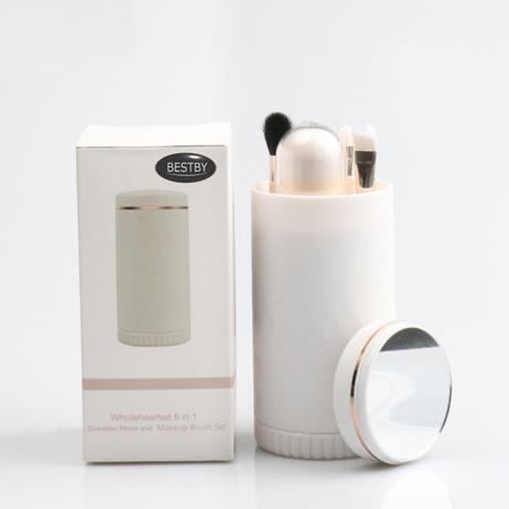 Bestby-6 in 1 Portable Mini Size Makeup Brushes Kit with Built-in Mirror – White