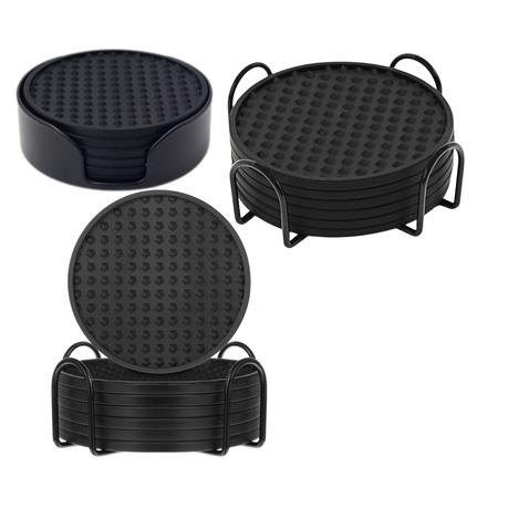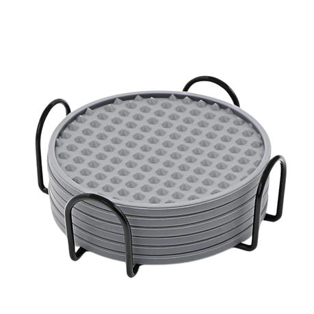 Bestby – 6 Pieces Silicone Coasters with Iron Holder – Grey