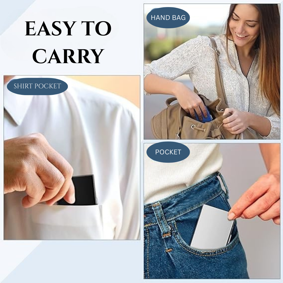 – Compact & Portable Design: Measuring just 9.5 x 6.5cm x 1.3cm, it easily fits in front or back pockets without bulk.
