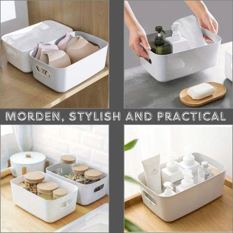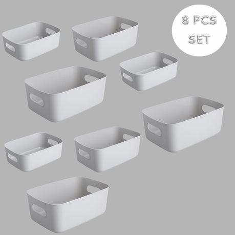 Bestby-8 Piece Plastic Desktop Storage Organizer Box with Handle(30.5x20x12cm) – Grey